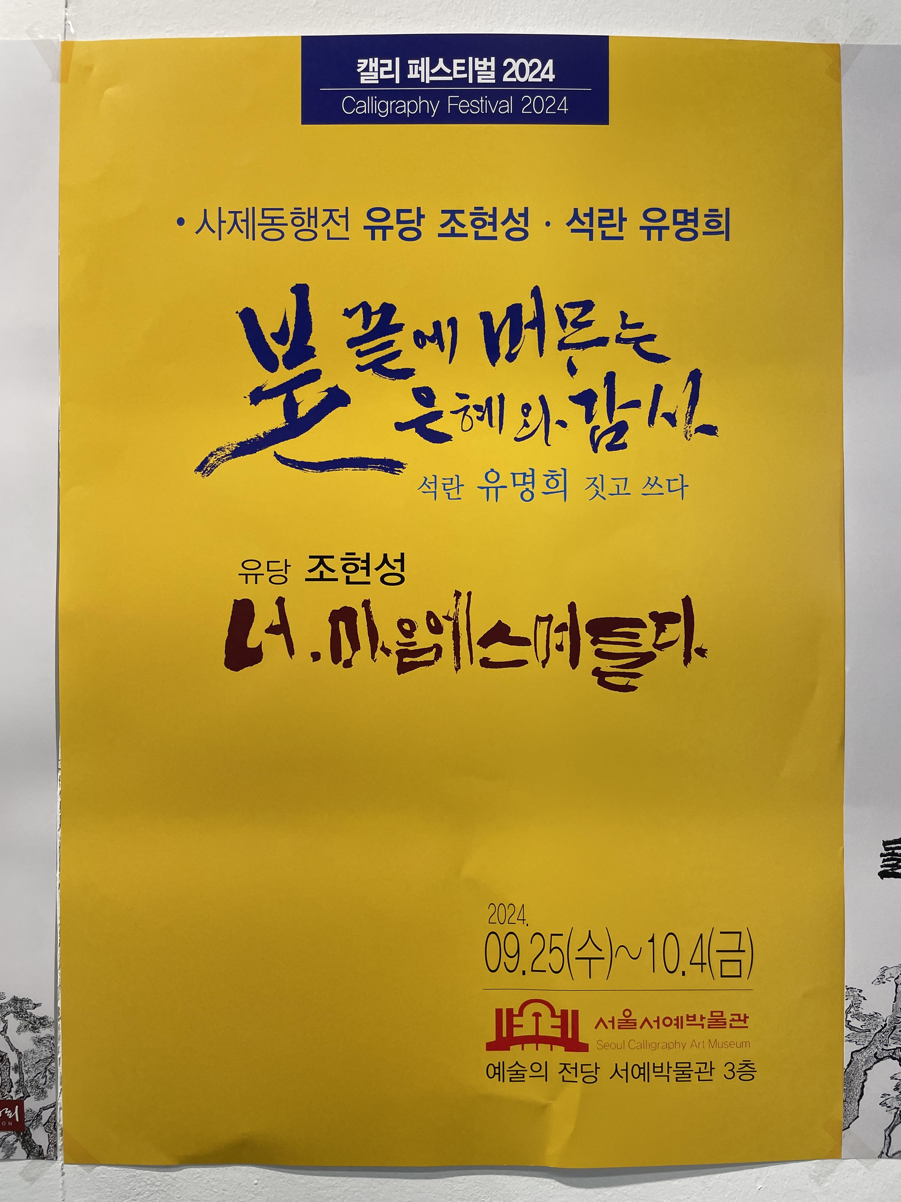 | [2024년 전시 관람] 제4회 아시안캘리그라피 축제_20240928 예술의전당 (5) | 2024.09.30 |