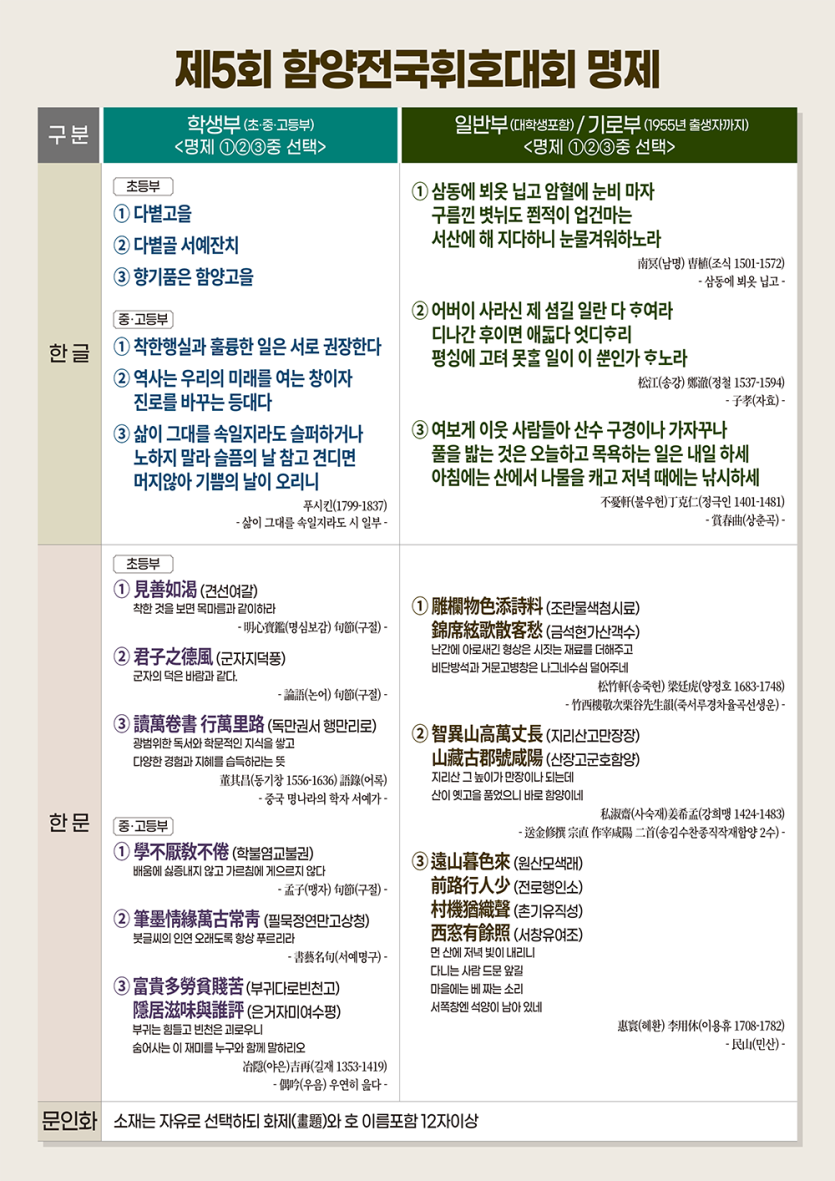 2025년 제5회 함양전국휘호대회 명제
