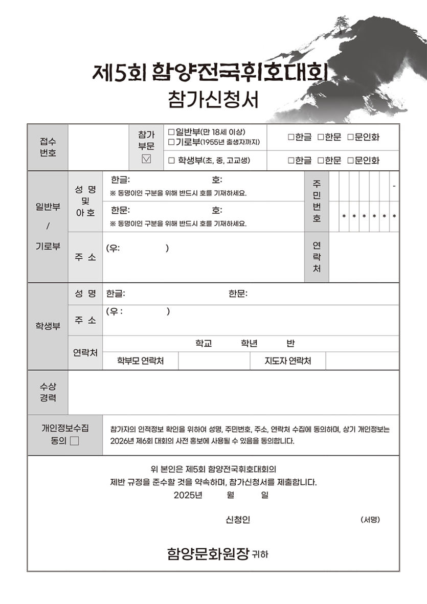 2025년 제5회 함양전국휘호대회 참가원서
