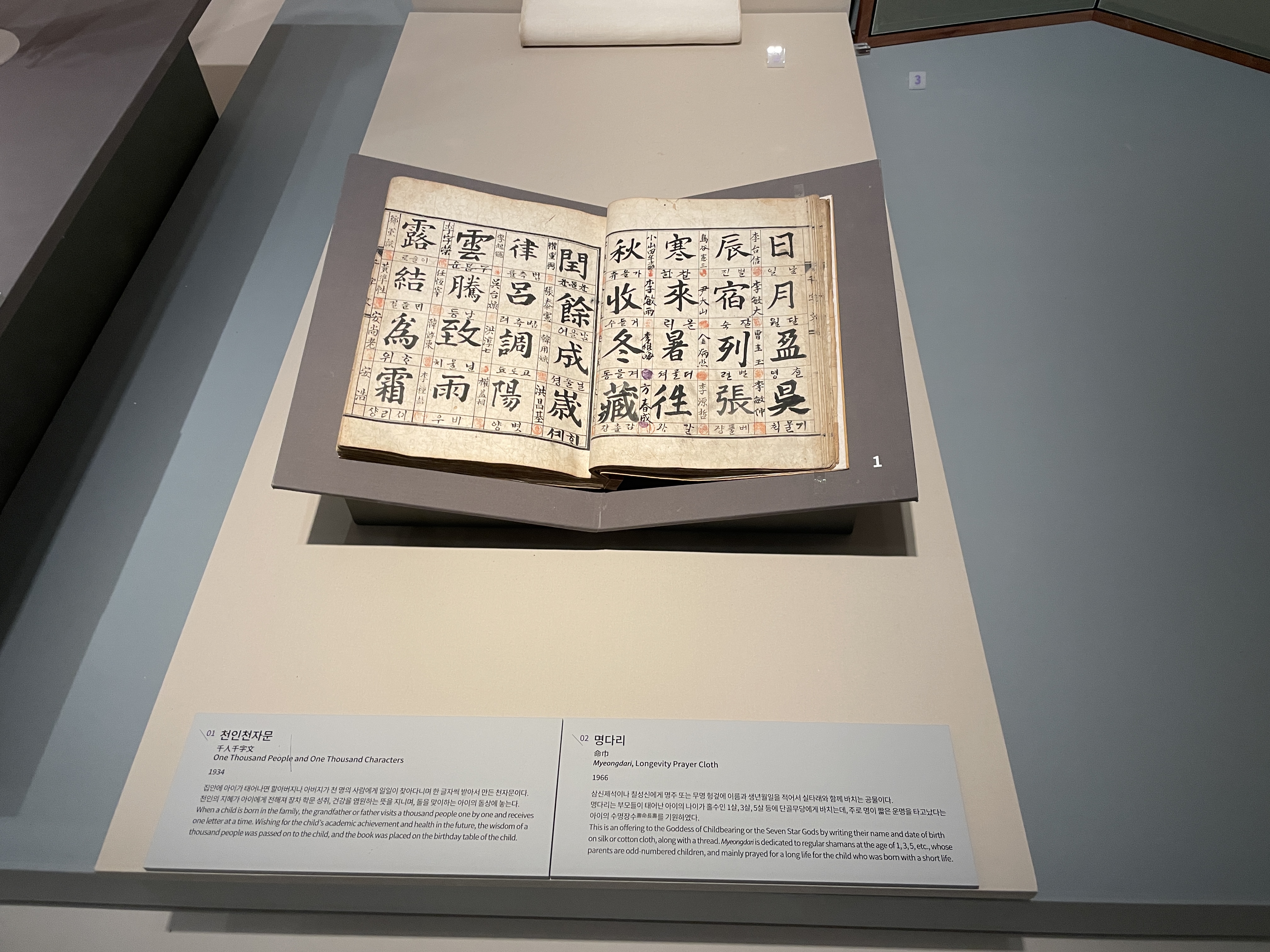 가장 인상 깊었던 건 바로 천자문이었는데요, 태어난 아이가 잘 자라길 기원하는 마음으로 천 명의 사람들에게 각각 한 자씩 받아 만들어진 책이었어요. 과정 자체가 많은 이들의 정성과 마음이 모여 만들어져 감동이 배가 되었어요.