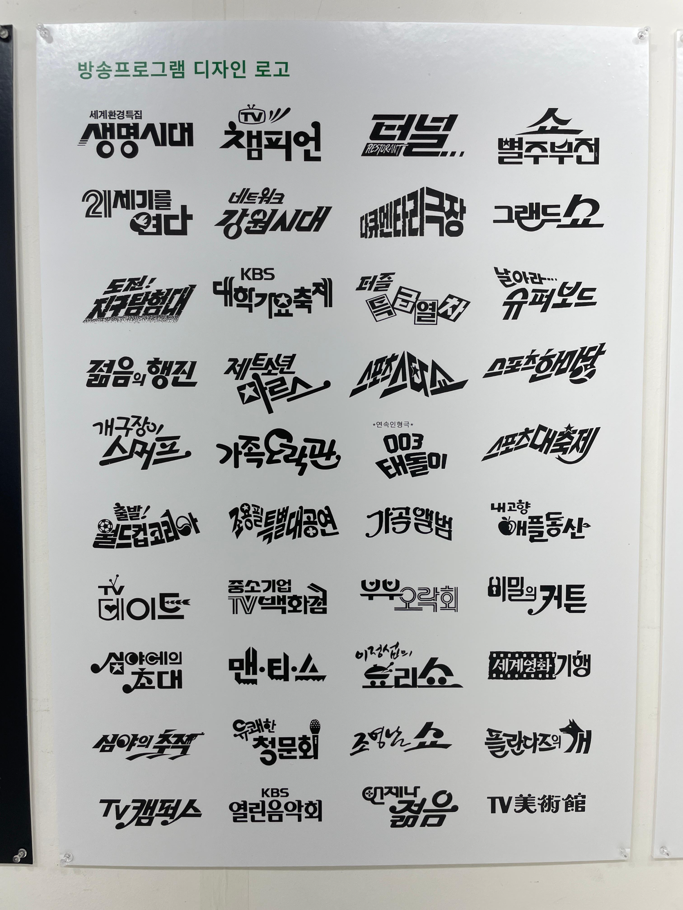 KBS 그래픽디자이너 일을 하셨다고 들었는데 실제 제가 많이 봐왔던 프로그램 로고 디자인을 하셨더라고요. 현대 캘리그라피 역사를 한눈에 보는 듯 했습니다.
