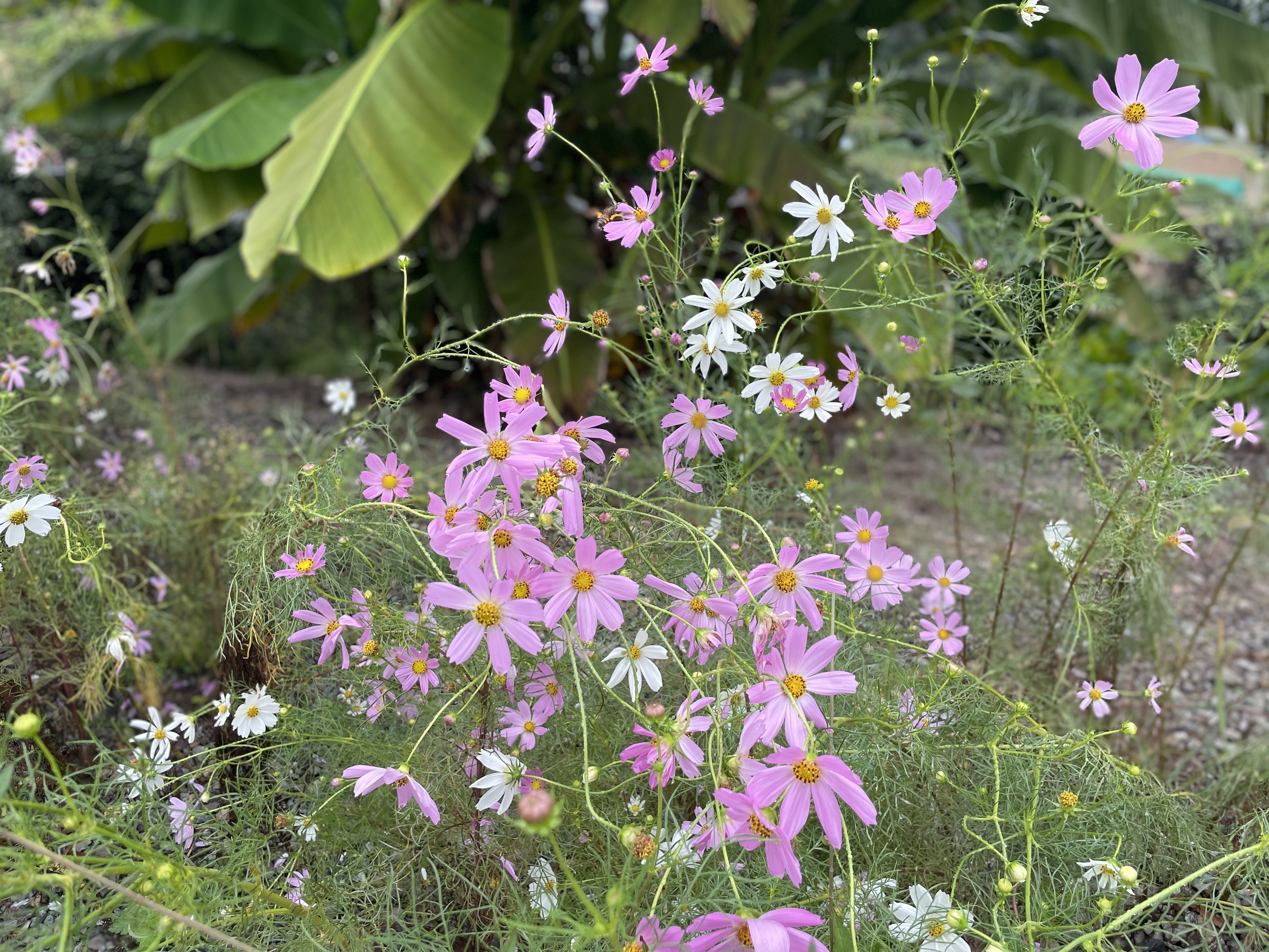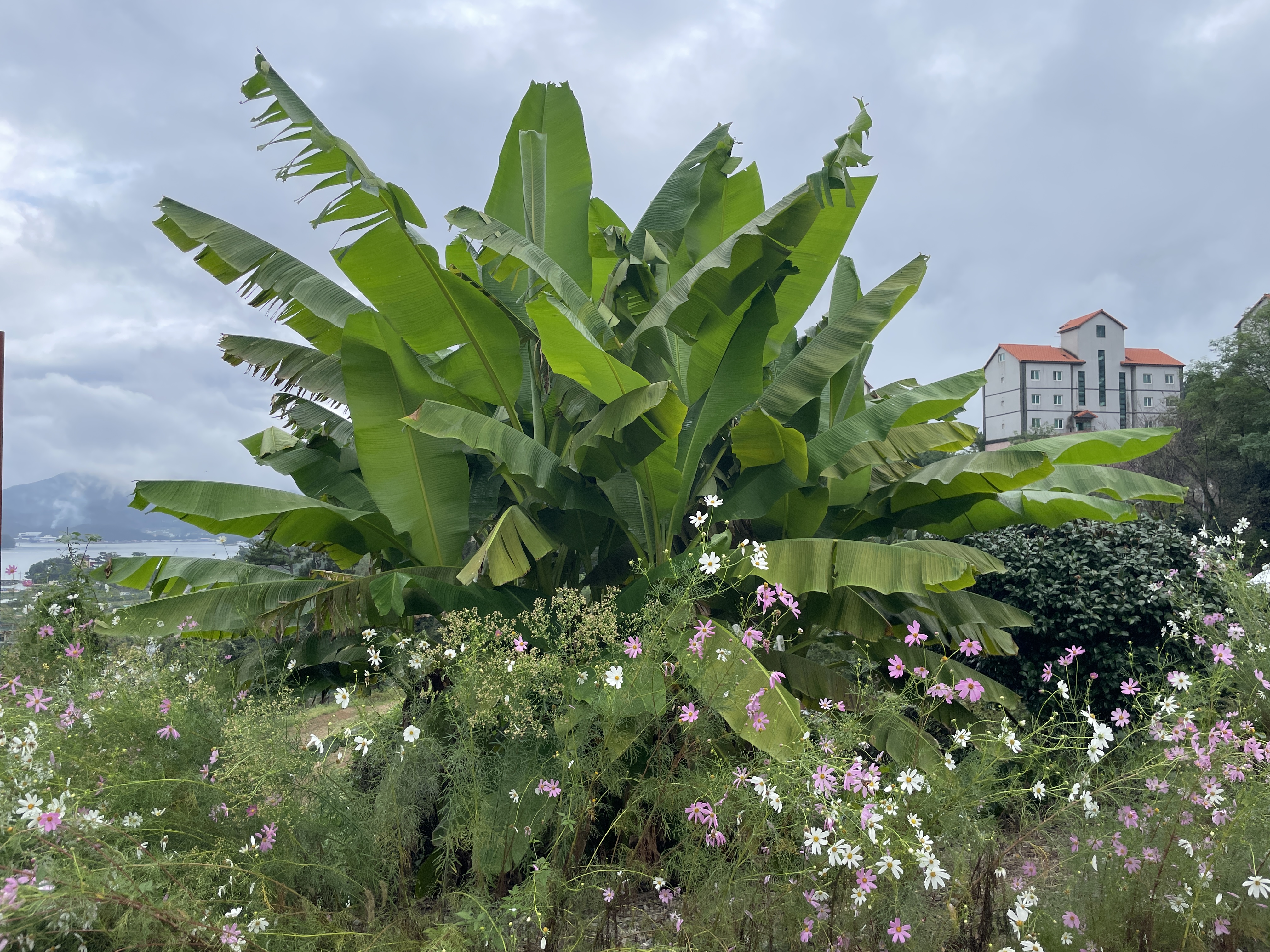 미술과 마당에 있는 파초와 코스모스가 잘 어울러져 있네요.