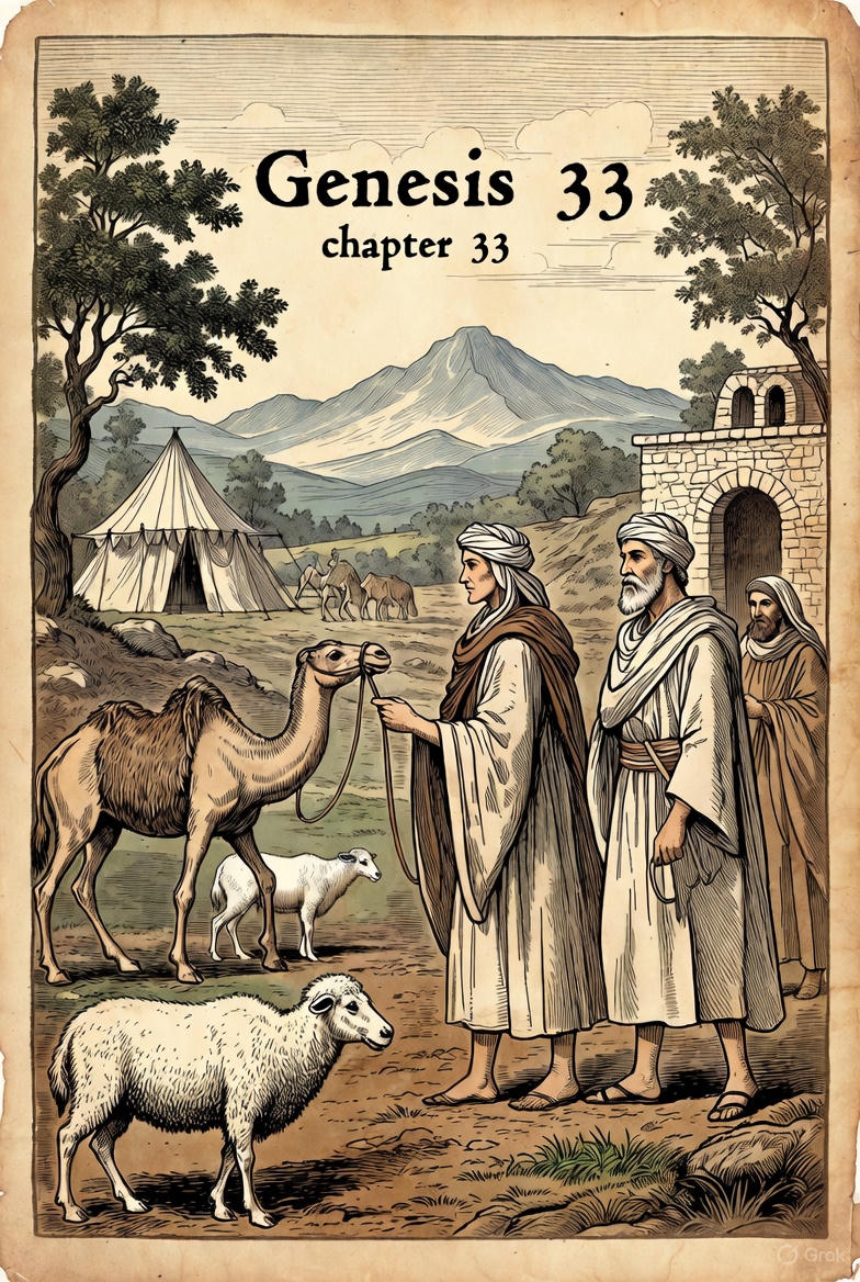 에사우가 눈을 들어 여자들과 아이들을 바라보며, “네 곁에 있는 이 사람들은 누구냐?” 하고 묻자, 야곱이 “하느님께서 당신의 이 종에게 은혜로이 주신 아이들입니다.” 하고 대답하였다.