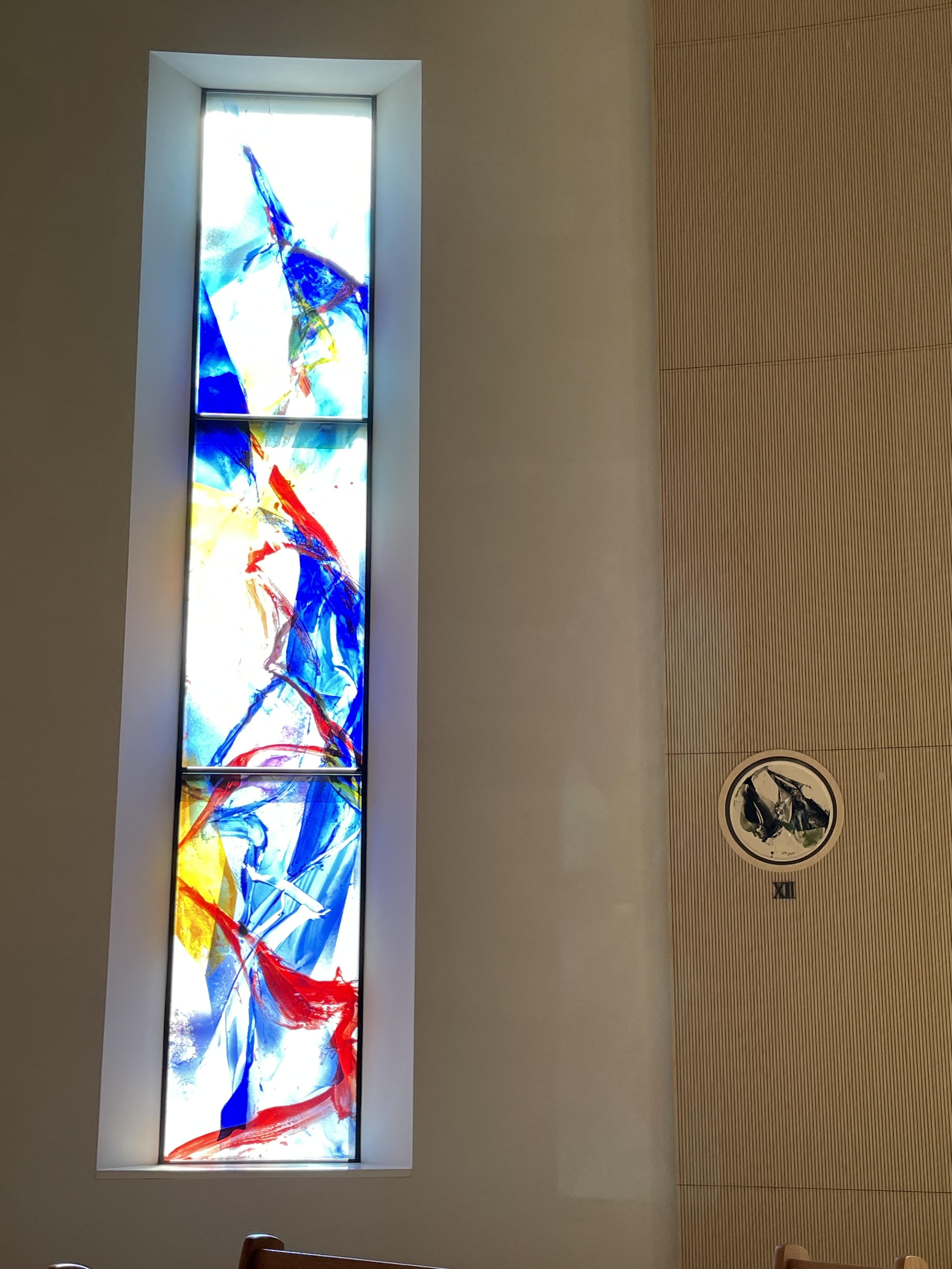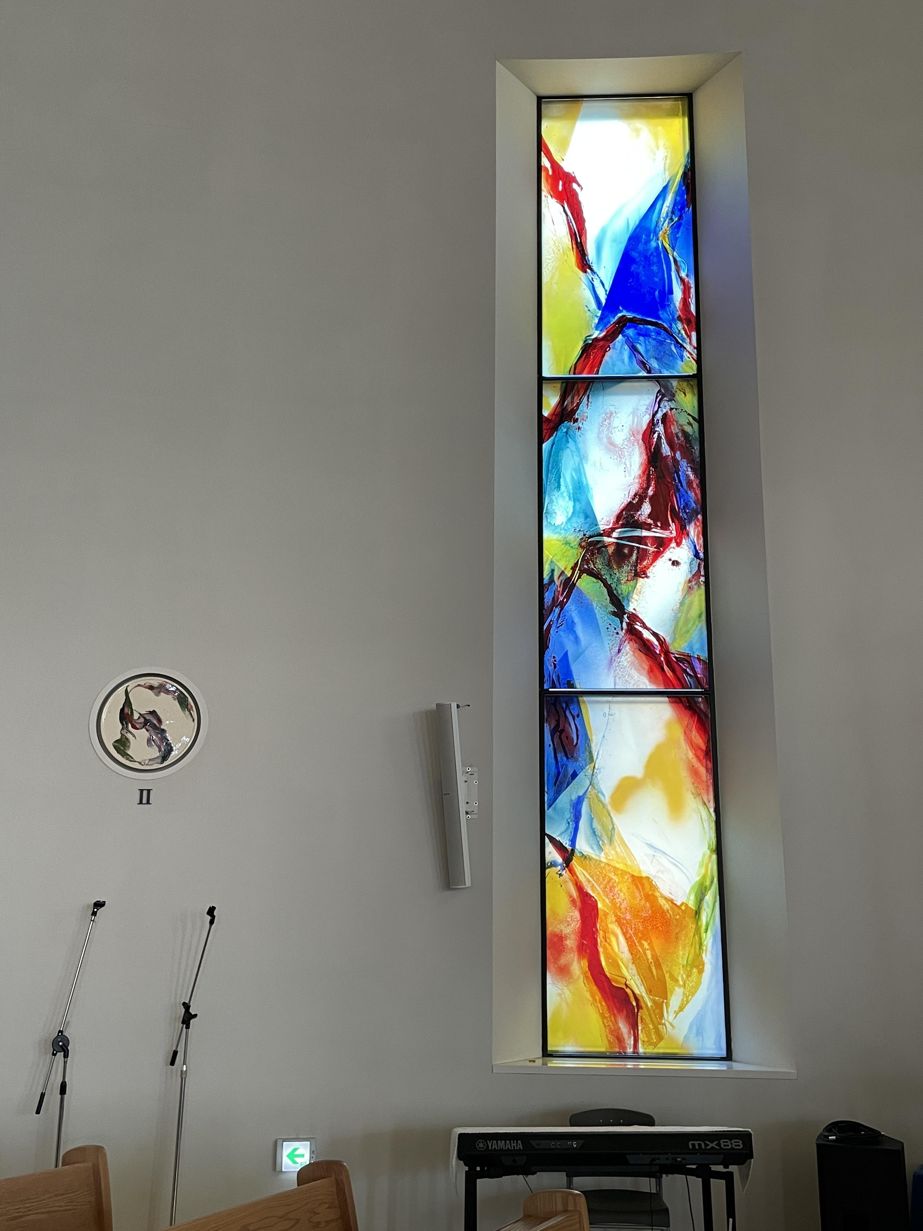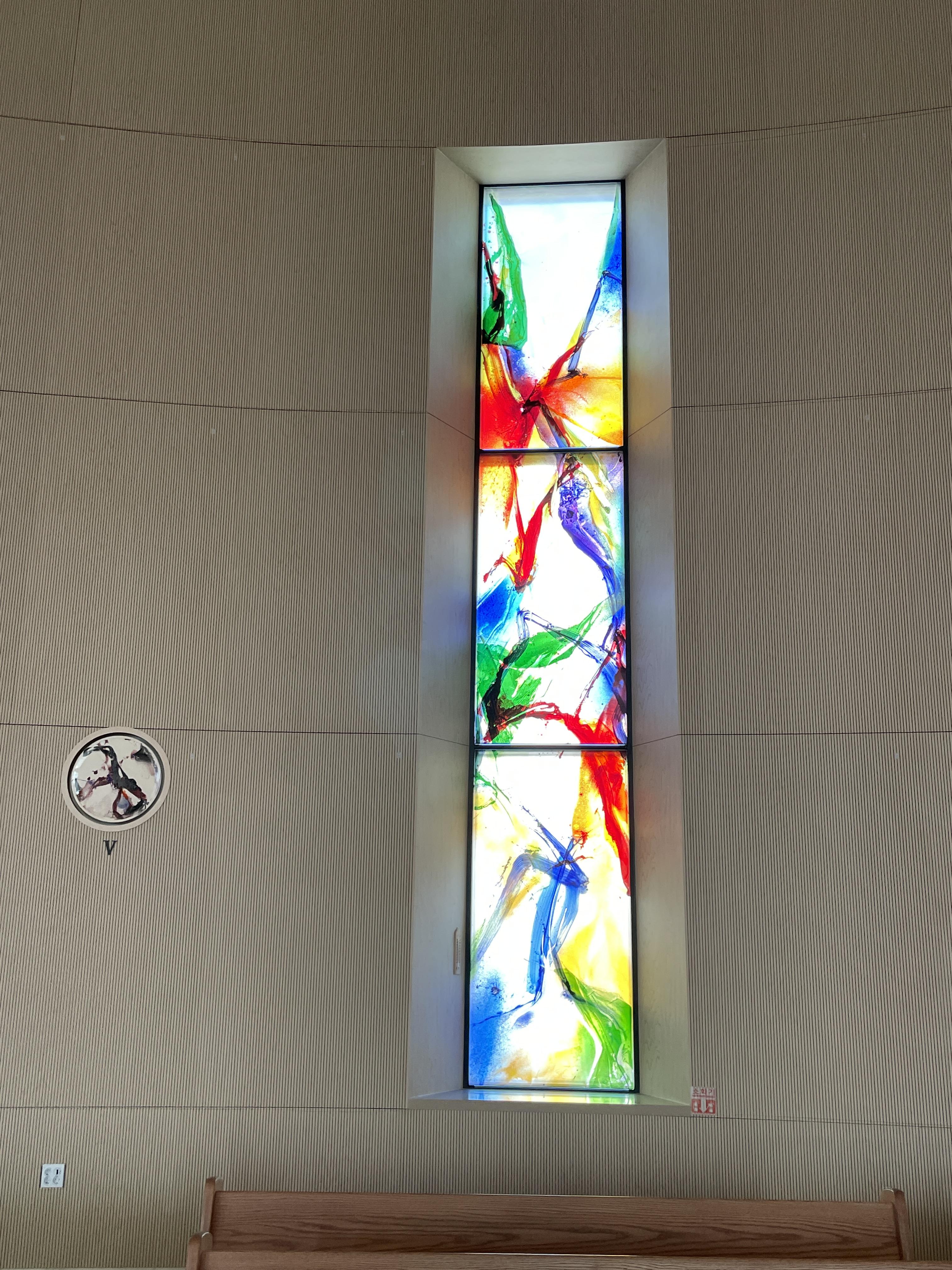 색유리화는 노랑·파랑·빨강·초록의 색조가 유리에 자유롭게 흩뿌려져 신비로움마저 자아낸다. 노랑은 부활·기쁨·환희를, 파랑은 성모님의 순결을, 빨강은 성령·열정·순교를, 초록은 창조·평화를 각각 상징한다.