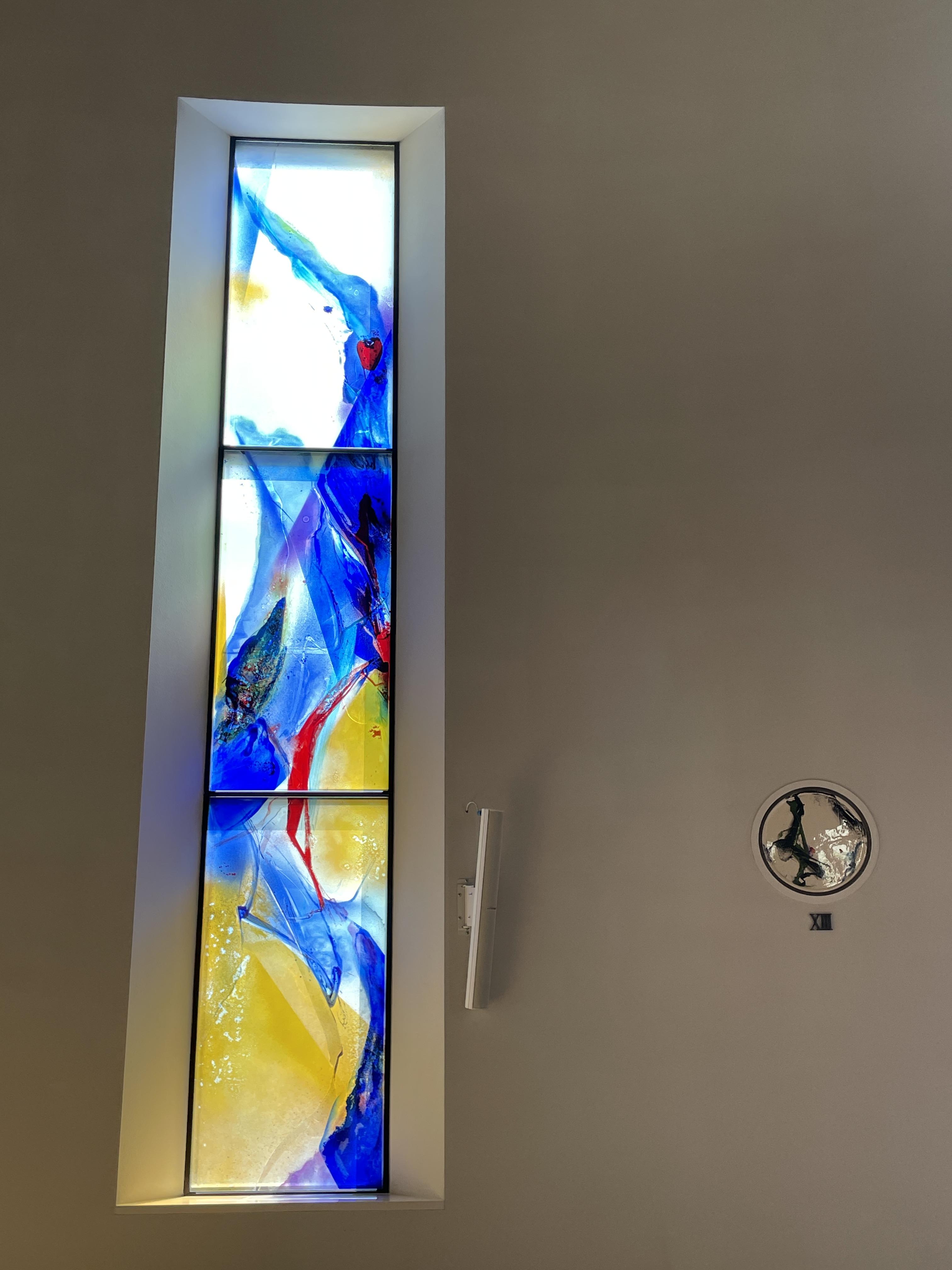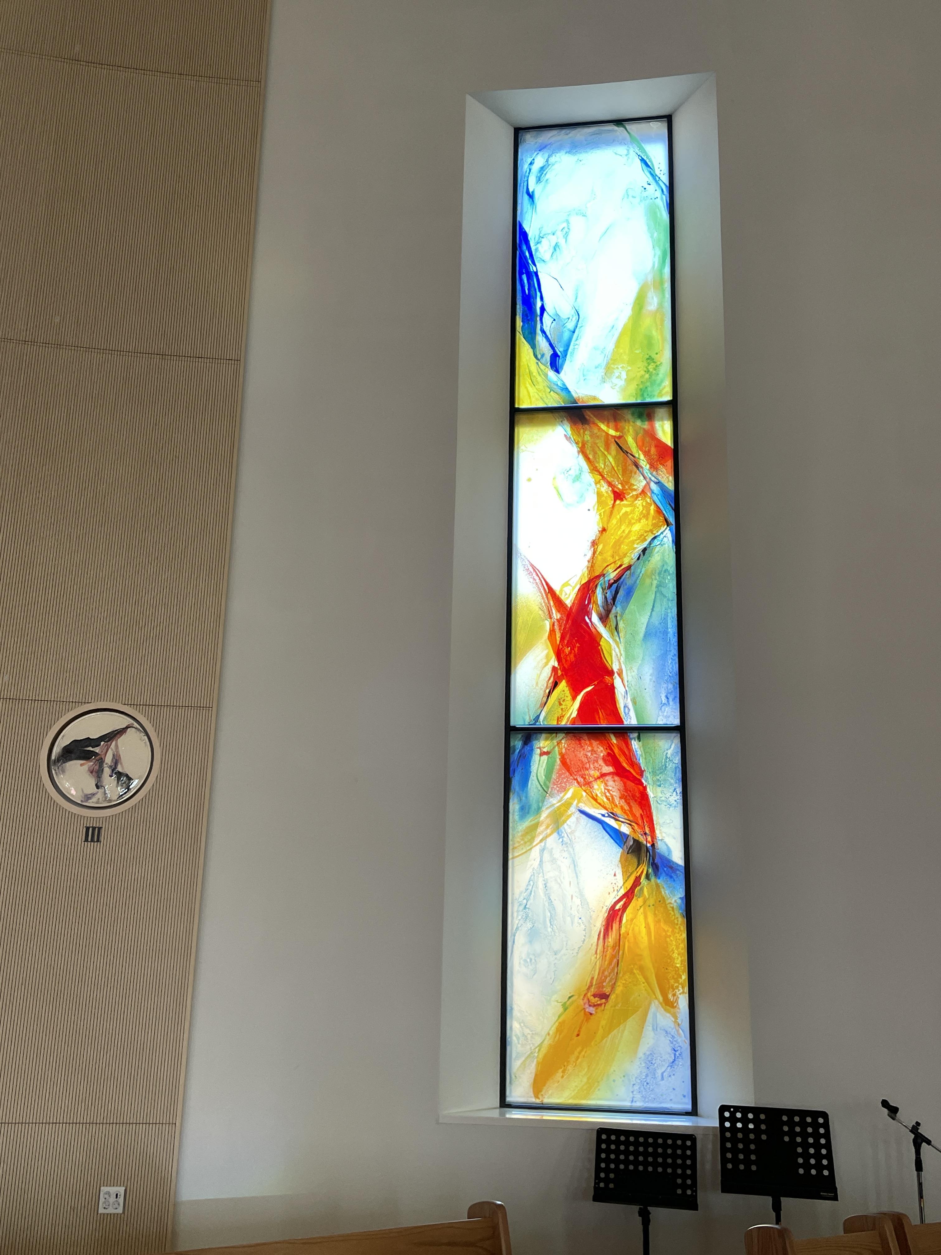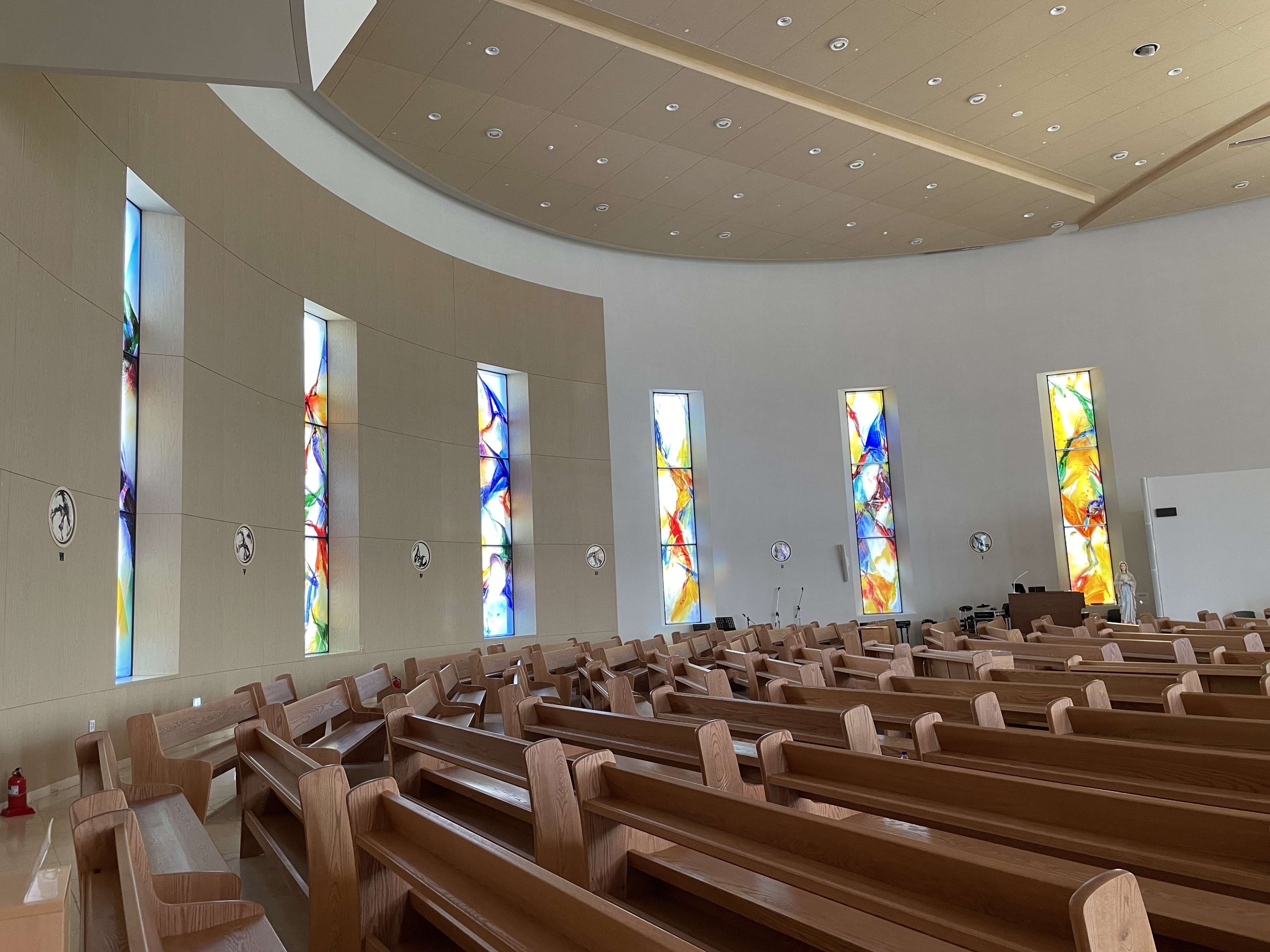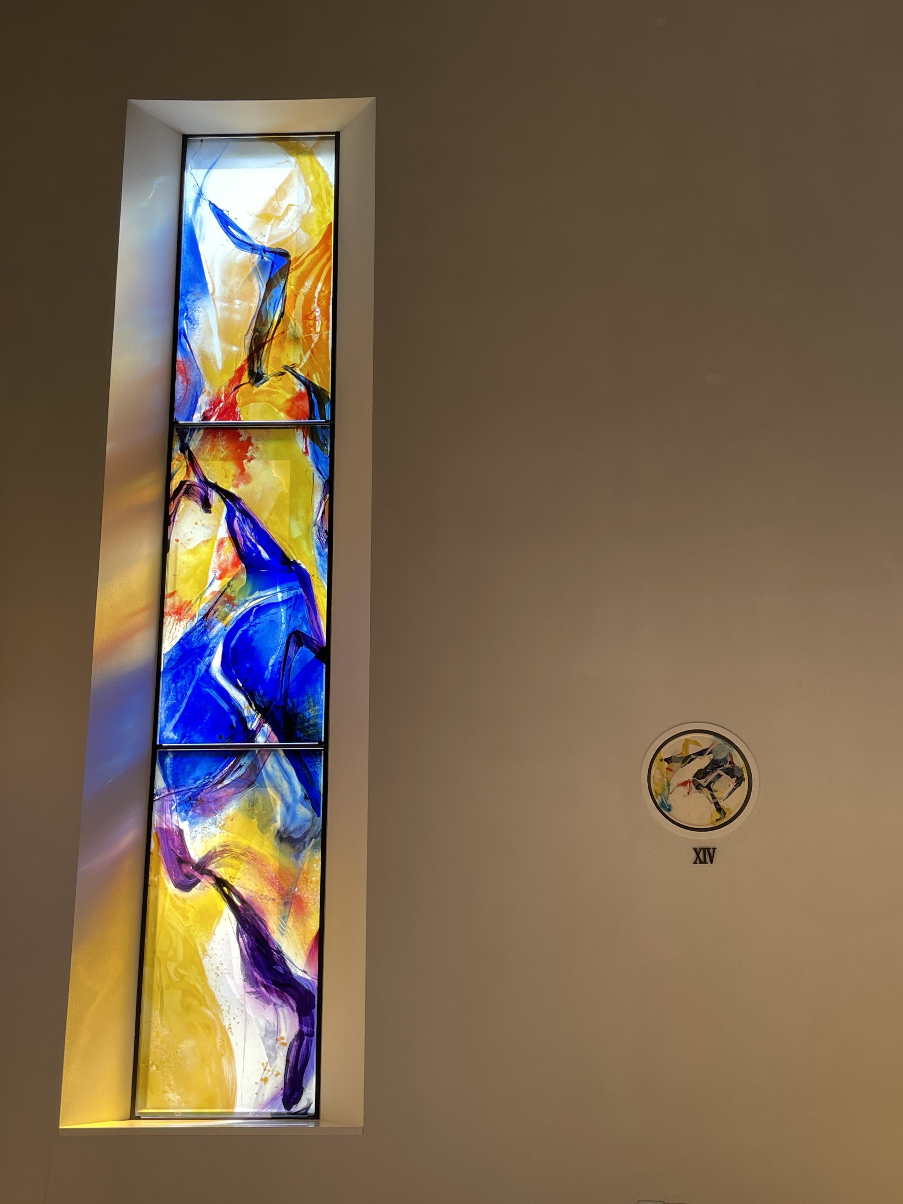 색유리화는 노랑·파랑·빨강·초록의 색조가 유리에 자유롭게 흩뿌려져 신비로움마저 자아낸다. 노랑은 부활·기쁨·환희를, 파랑은 성모님의 순결을, 빨강은 성령·열정·순교를, 초록은 창조·평화를 각각 상징한다.